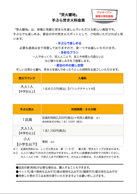 手ぶらでも楽しめる、都会の中の焚き火スポットとして、ご利用いただければと思います。