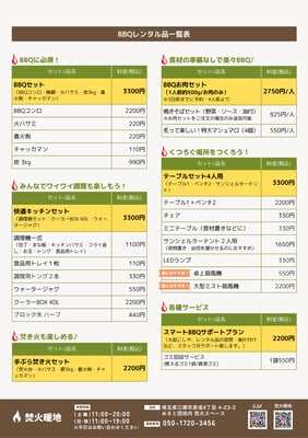 BBQの料金プランについては準備出来次第公開致します。