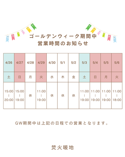 焚火暖地始まってから初のゴールデンウィークです。